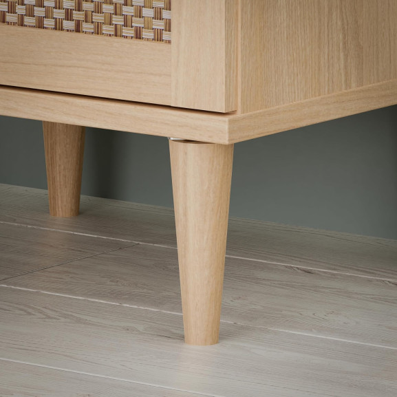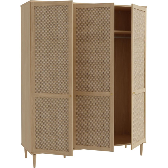 Picioarele din lemn oferă stabilitate și durabilitate, în timp ce fronturile cu Polyrattan adaugă un element de naturalețe și autenticitate. Cu spațiu generos de depozitare și rafturi ajustabile, Dulapul Charleston este soluția ideală pentru organizarea hainelor și a altor obiecte în dormitorul sau în orice alt spațiu de locuit.
