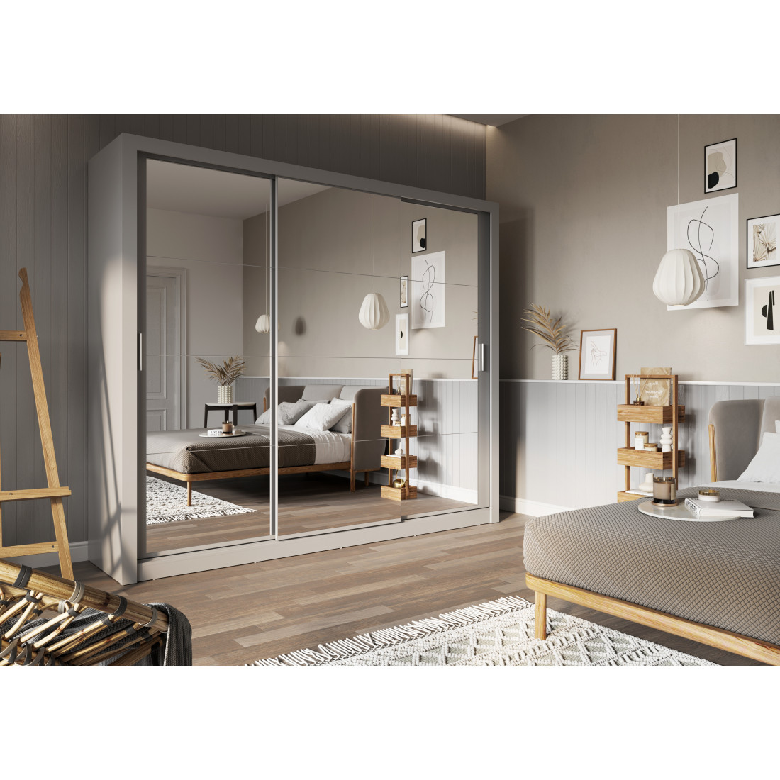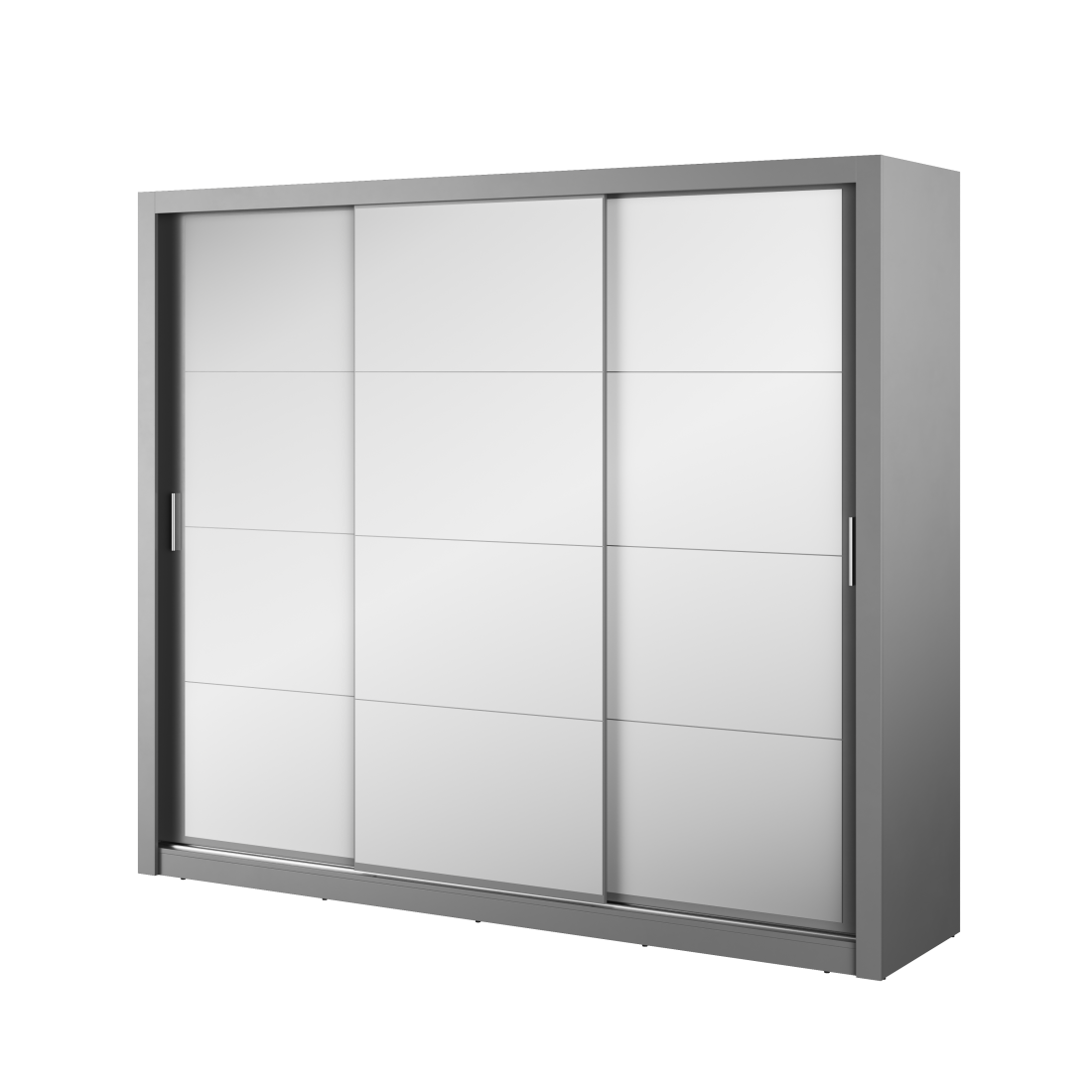 Dulap 3 Usi Glisante Thea, Gri, 250 Cm