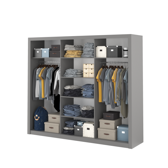 Fabricat din plăci aglomerate din lemn de înaltă calitate, dulapul Thea este construit pentru a rezista și a oferi o soluție durabilă pentru organizarea locuinței dumneavoastra. Culoarea gri conferă un aspect modern și versatil, potrivindu-se perfect într-o varietate de amenajări interioare.