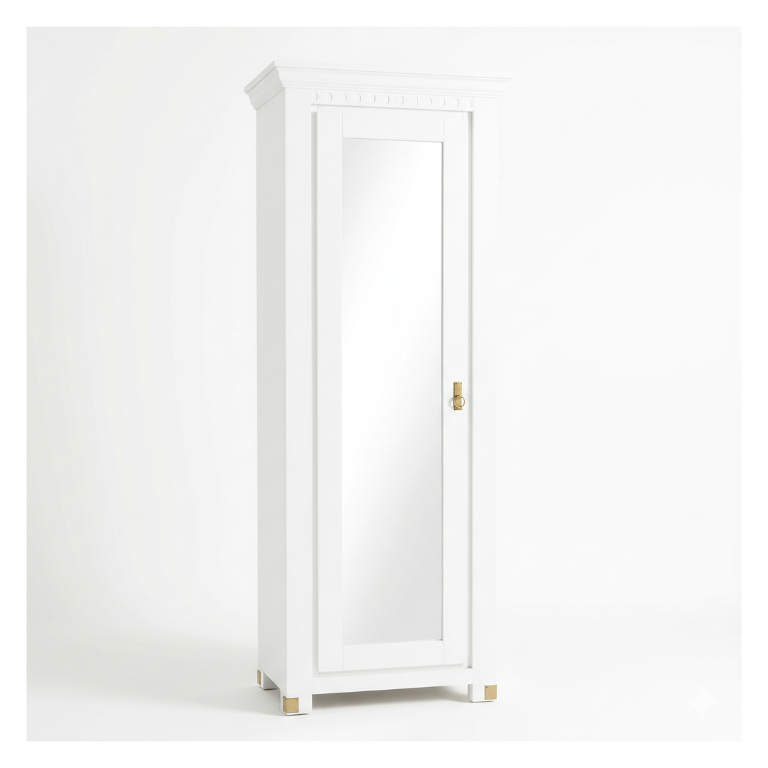 Adaugă eleganță și luminozitate locuinței tale cu Dulapul cu 1 Ușă Saint Tropez Alb, o piesă de mobilier rafinată ce combină designul clasic cu accente moderne. Realizat cu atenție la detalii și finisat manual în alb mat, acest dulap îmbogățește orice spațiu cu un aer curat, sofisticat și atemporal.