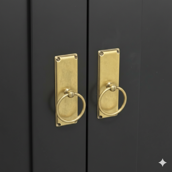 Mânere metalice aurii și detalii decorative la bază