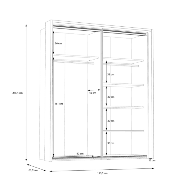 Indiferent de dimensiunea camerei tale, dulapul nostru cu oglindă se adaptează cu ușurință, maximizând utilizarea spațiului disponibil. Compartimentarea interioară inteligentă îți permit să organizezi hainele, accesoriile și alte obiecte personale într-un mod ordonat și accesibil.
