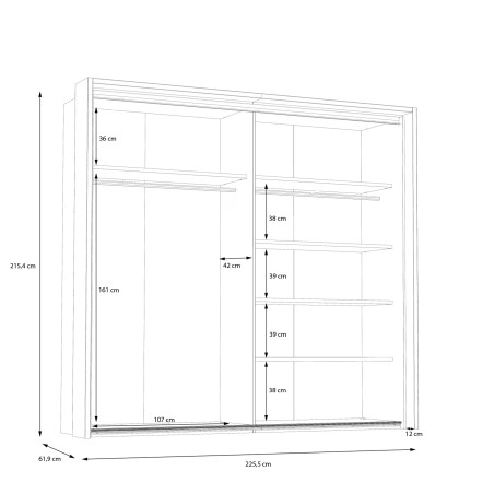 Indiferent de dimensiunea camerei tale, dulapul nostru cu oglindă se adaptează cu ușurință, maximizând utilizarea spațiului disponibil. Compartimentarea interioară inteligentă îți permit să organizezi hainele, accesoriile și alte obiecte personale într-un mod ordonat și accesibil.