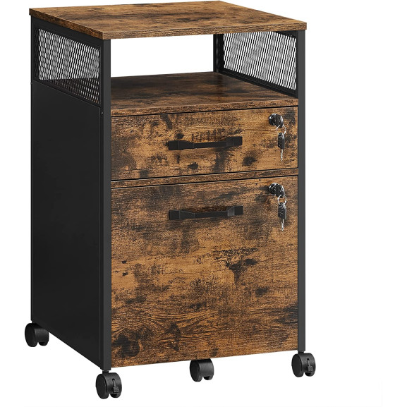 Dulap De Birou Mobil Cu 2 Sertare, Maro Rustic Si Negru, 42 Cm