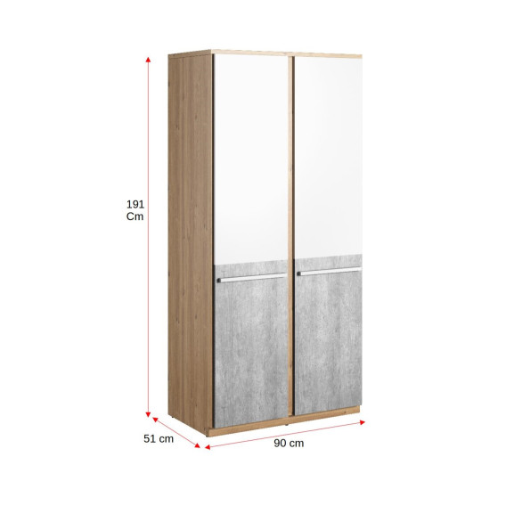 Dulap Divizat Piano Cu 2 Usi, Stejar Nash, Alb Si Beton, 90 Cm