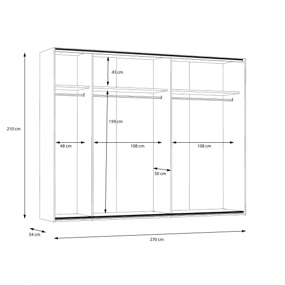 Cu rafturi și bare pentru umerase, dulapul oferă o organizare eficientă a hainelor, pantofilor și accesoriilor tale. Indiferent dacă ai nevoie de un spațiu generos pentru ținutele de zi cu zi sau un loc special pentru hainele formale, acest dulap îți oferă opțiuni versatile de depozitare.