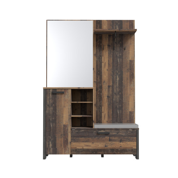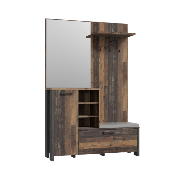 Cu combinația sa de lemn vintage și beton optic gri închis, această garderobă se potrivește perfect atât în interioarele clasice, cât și în cele moderne.