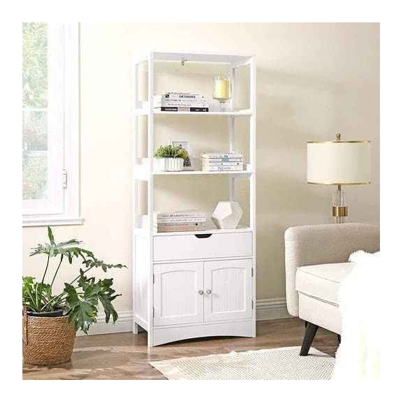 Dulap Inalt De Depozitare Pentru Baie, Cu 3 Rafturi, 1 Sertar Si 2 Usi, Alb, 60 Cm-01