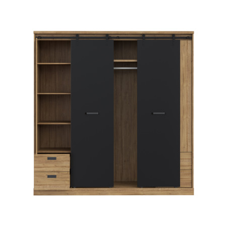 Dulap Kaszimiro, Stejar Waterford si Negru, 203 Cm