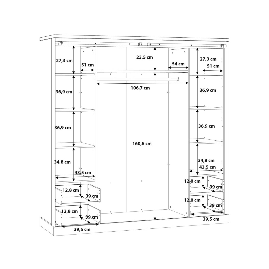 Cu multiple rafturi și sertare spațioase, dulapul Kaszimiro îți oferă o gamă variată de opțiuni de organizare. Poți păstra hainele, accesoriile și obiectele personale într-un mod eficient și ordonat. Cu un dulap bine organizat, vei economisi timp și vei avea totul la îndemână în fiecare zi.