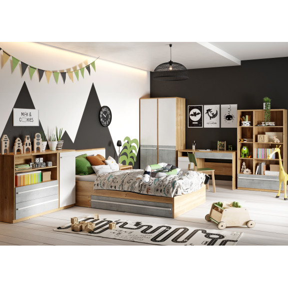 Biblioteca Piano Cu 1 Sertar, Stejar Nash, Alb Si Beton, 90 Cm