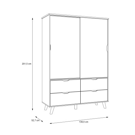Descoperă funcționalitatea și eleganța dulapului de dormitor Vankka cu 2 uși și 4 sertare și bucură-te de un dormitor organizat și plăcut în fiecare zi. Acest dulap este alegerea ideală pentru a-ți păstra hainele și obiectele personale într-un mod practic și estetic.