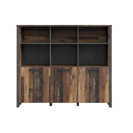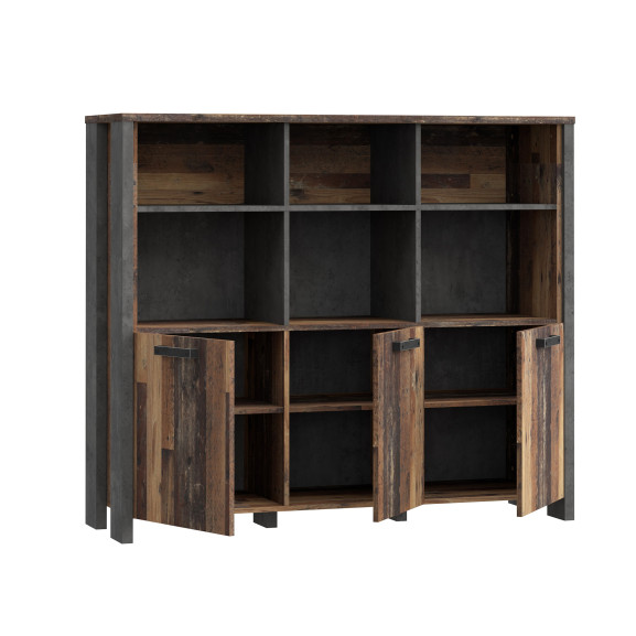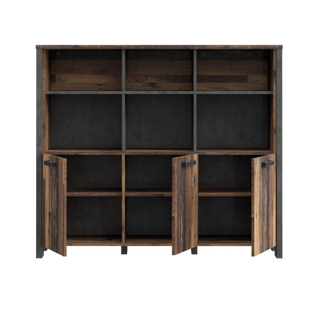 Cu 3 uși spațioase, această etajeră oferă spațiu generos pentru depozitarea sticlelor, paharelor, cărților sau a altor obiecte valoroase. Manerele negre completează aspectul și adaugă un strop de modernitate.