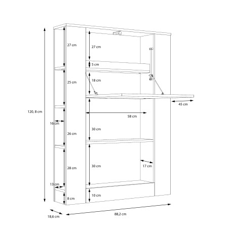 Etajera Multifunctional Sonoma, 88.2 x 120.8 x 18.6 (62.2) Cm-01