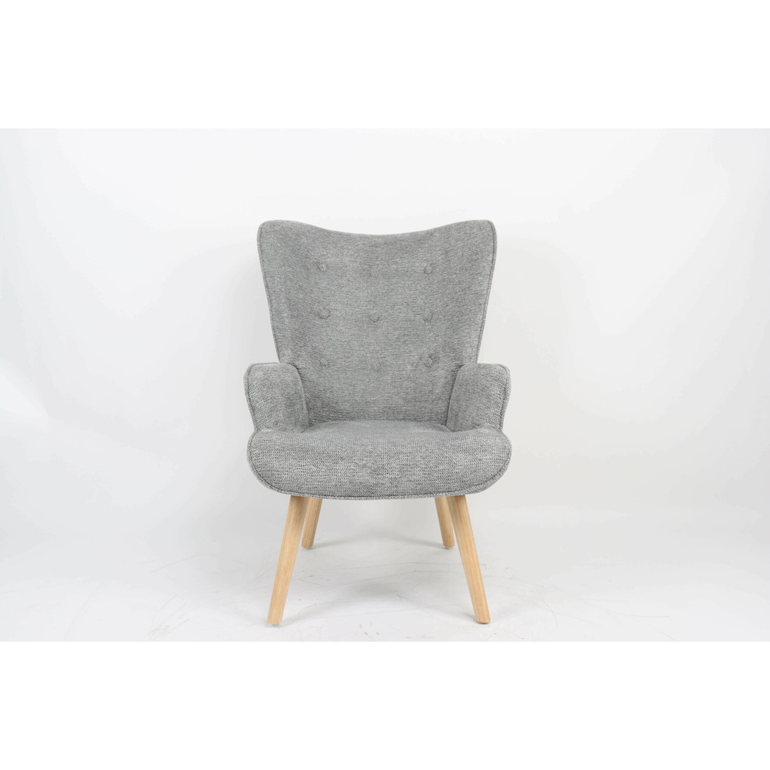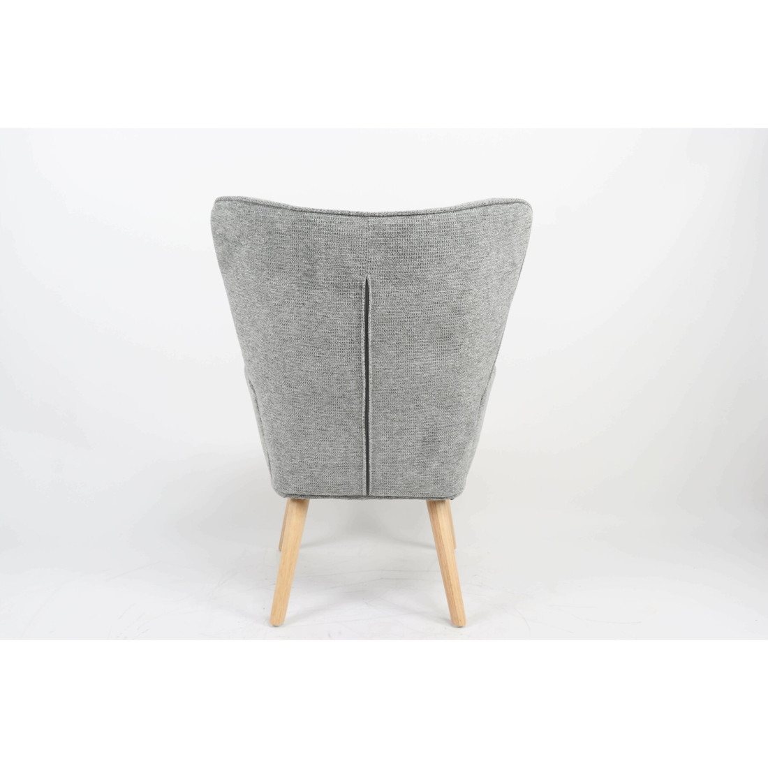 Tapițeria din stofă moale, în nuanța delicată de gri, adaugă o notă de prospețime și feminitate, creând un contrast plăcut cu picioarele din lemn natural, specifice stilului scandinav.