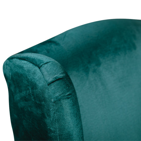 Cu o culoare verde îmbietoare, acest fotoliu devine instantaneu punctul focal al oricărui decor. Picioarele finisate în wenge maroniu completează aspectul elegant, aducând un element de stabilitate și rafinament la acest obiect de mobilier.