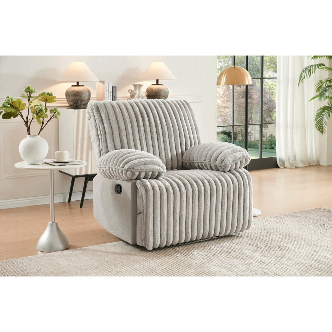 Fotoliu Siesta Catifea Raiata, Crem, 110 Cm-01