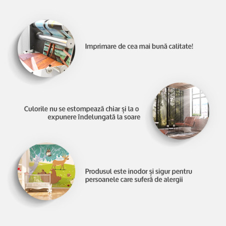 Fototapetul autoadeziv este realizat din materiale inodore și sigure, astfel încât să poată fi utilizat în orice cameră, inclusiv în dormitorul dvs. și în camera copilului.