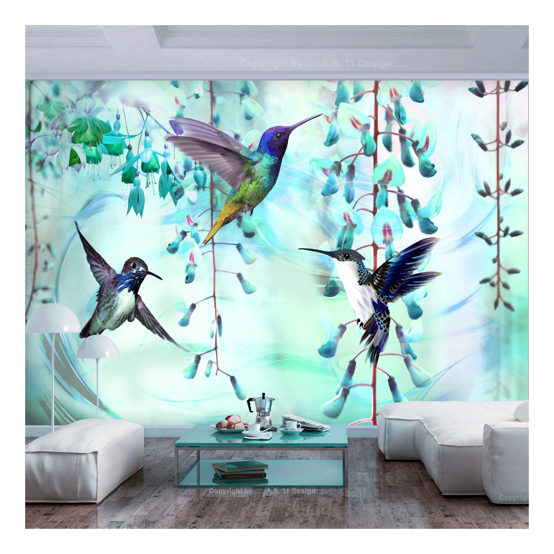 Fototapet autoadeziv Flying Hummingbirds (Green)