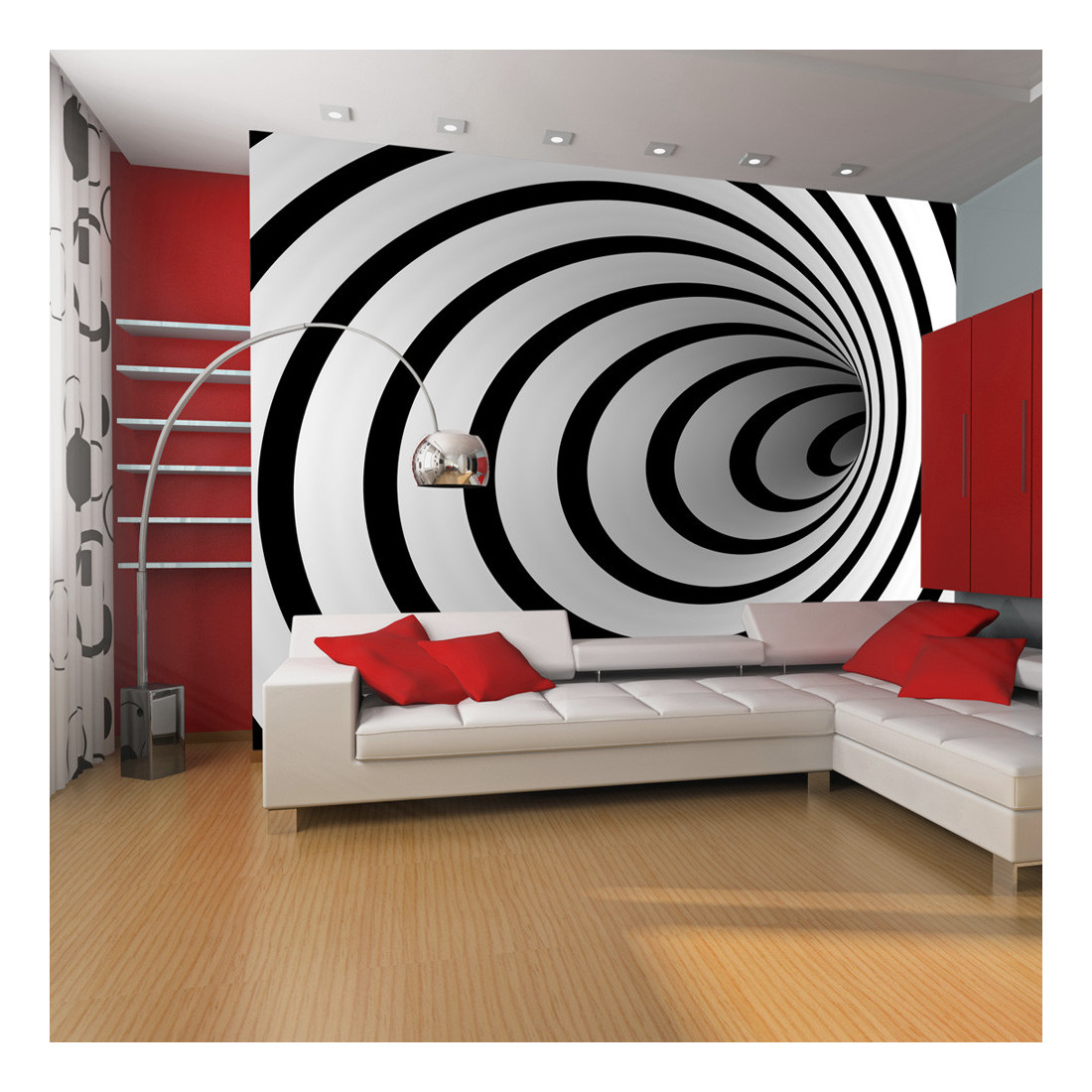 Vezi cum să montezi fototapetul "Black and white 3D tunnel" pas cu pas.