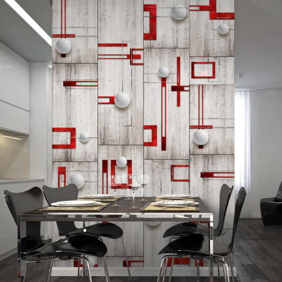Vezi cum să montezi fototapetul "Concrete, red frames and white knobs" pas cu pas.