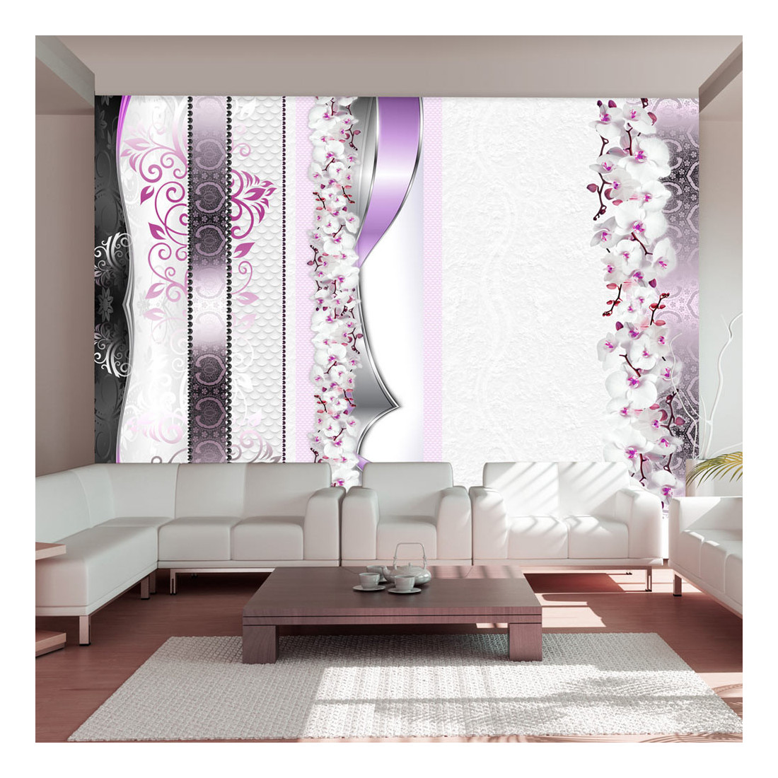 Vezi cum să montezi fototapetul "Parade of orchids in violet" pas cu pas.