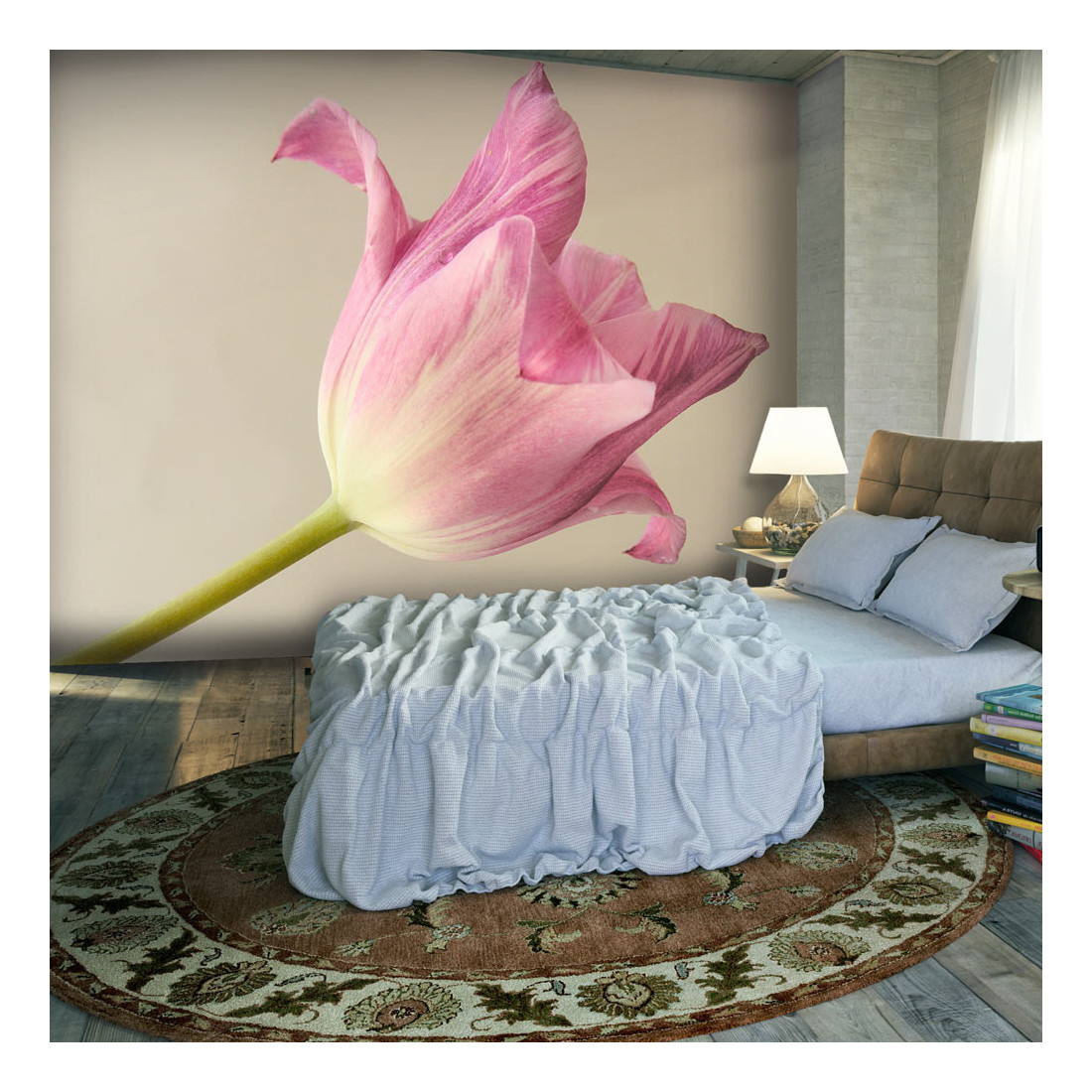 Fototapetul vlies rezistent la apă și zgârieturi "Pink tulip" se aplică pe perete. Fototapetul "Pink tulip", cu un design inspirat, va reprezenta un decor senzațional al oricărei încăperi. Tapetele flaușate sunt aplicate cu ajutorul adezivului. Acestea pot fi montate în orice cameră, chiar și în baie sau în bucătărie. Tapetul vlies cu acoperire semi-mată ascunde imperfecțiunile minore ale peretelui. Creează un strat de izolație termică și le permite pereților să respire. Imprimeul rezistent la apă este foarte durabil.