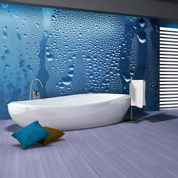 Fototapetul vlies rezistent la apă și zgârieturi "Water drops on blue glass" se aplică pe perete. Fototapetul "Water drops on blue glass", cu un design inspirat, va reprezenta un decor senzațional al oricărei încăperi. Tapetele flaușate sunt aplicate cu ajutorul adezivului. Acestea pot fi montate în orice cameră, chiar și în baie sau în bucătărie. Tapetul vlies cu acoperire semi-mată ascunde imperfecțiunile minore ale peretelui. Creează un strat de izolație termică și le permite pereților să respire. Imprimeul rezistent la apă este foarte durabil.