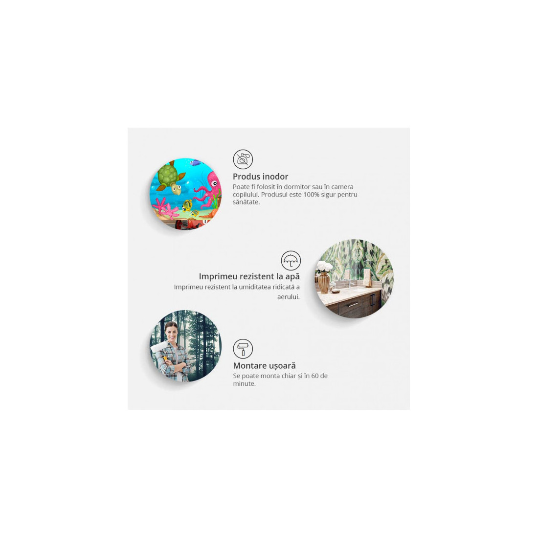 Fototapetul este alcătuit din fâșii de 50 cm ușor de instalat.