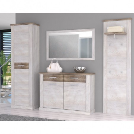 Creat cu atentie, din placi aglomerate din lemn, cu folie structurala ce imita lemnul natural, cu un finisaj de Pin alb / Stejar antic. Garderoba Duro este elegant si practic, oferind spatiu suplimentar de depozitare.<