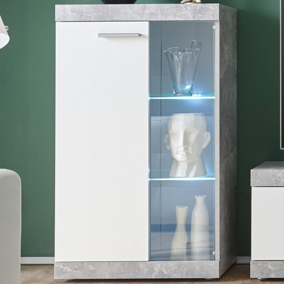 Biblioteca Jake este realizat intr-un design unic si modern, cu doua finisaje: alb si beton. Biblioteca este alcatuita din 4 piese de mobilier: vitrina 600 x 1005 x 380 mm., comoda pentru TV 1850 x 390 x 410 mm., vitrina suspendata 600 x 1005 x 380 mm. si polita 1300 x 240 x 225 mm.