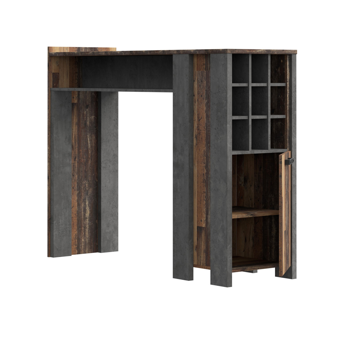Masa Bar Clif, Lemn Vintage Si Beton Optic Gri Inchis, 151.5 x 118.3 x 47.3 Cm