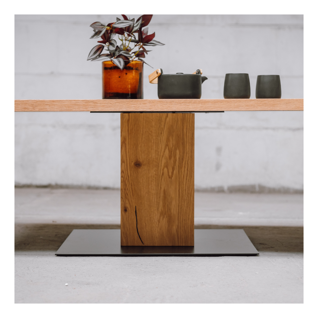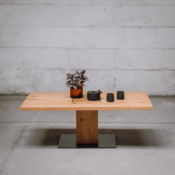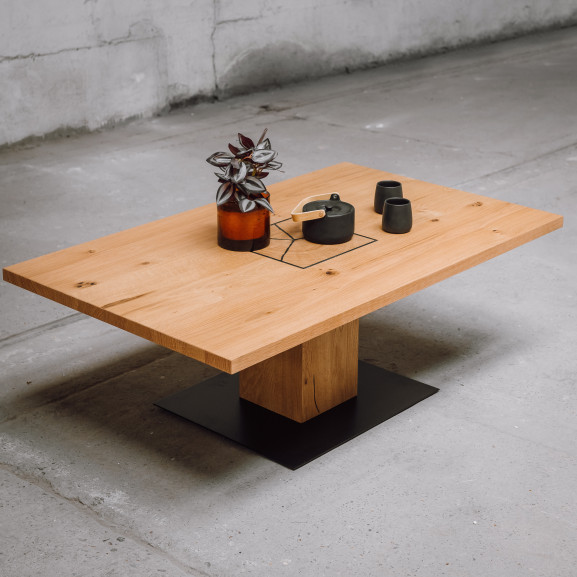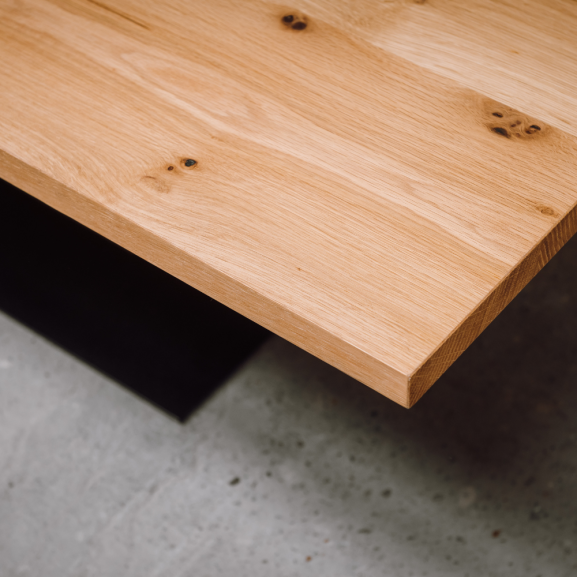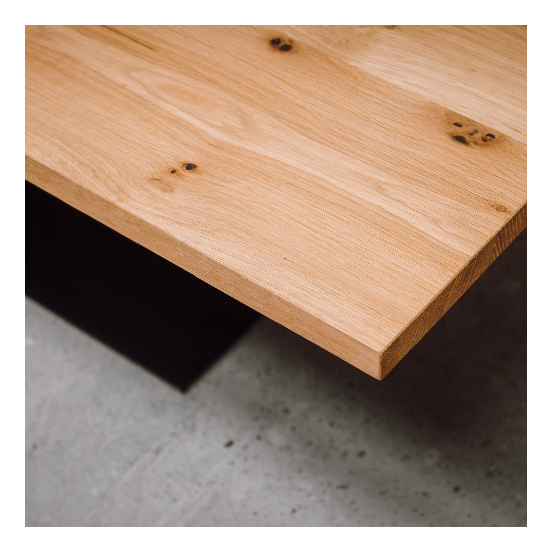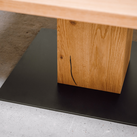 Placă de bază: Metal lacuit negru, blat și coloană: furnir de stejar sălbatic, uns