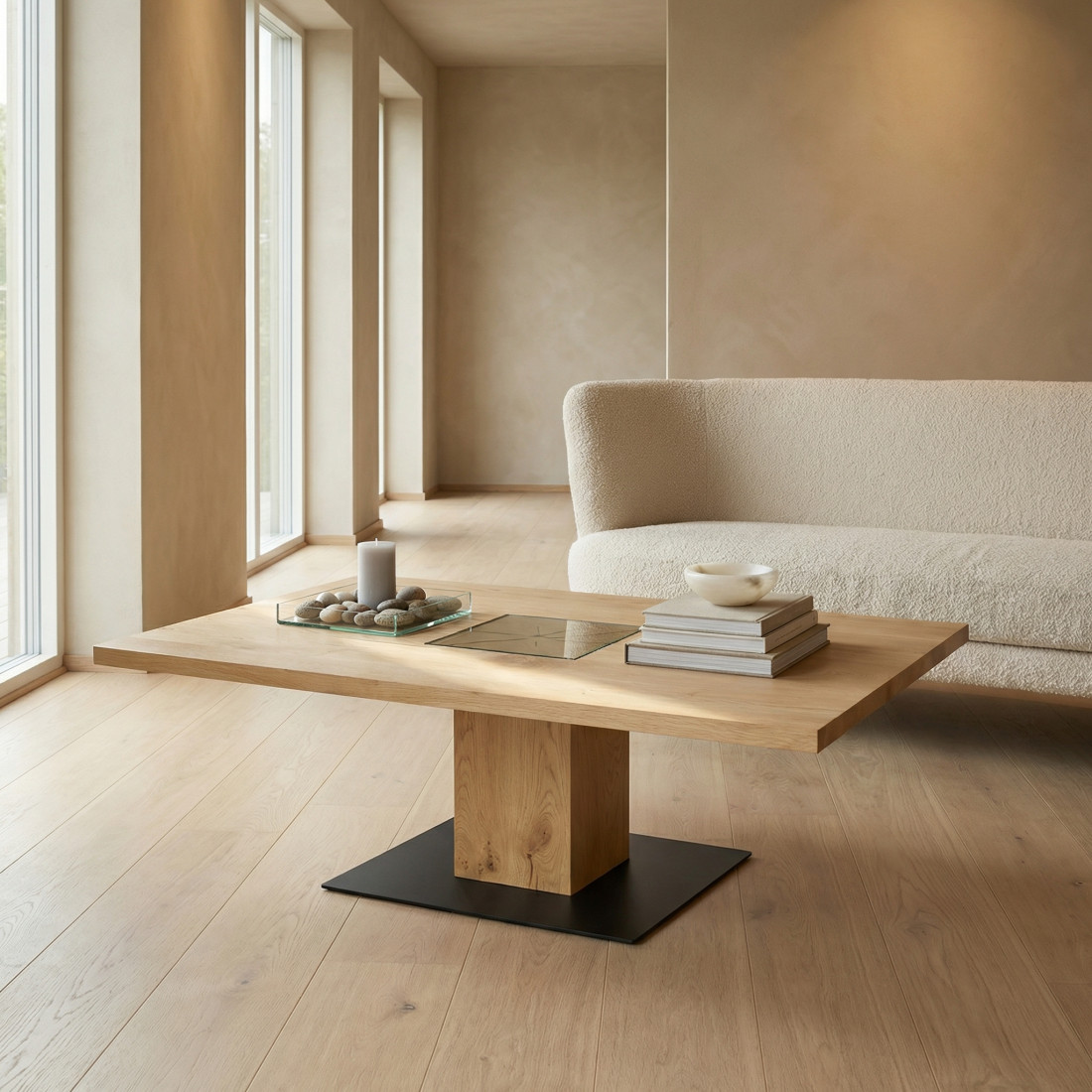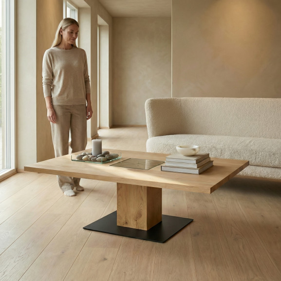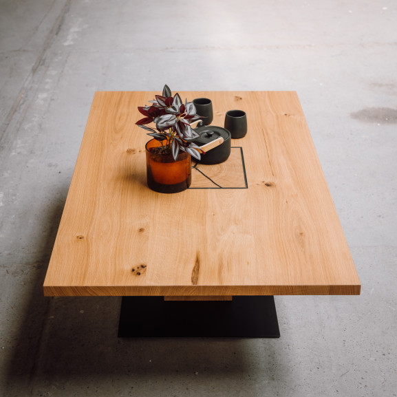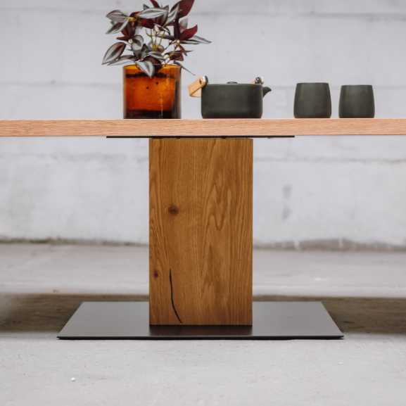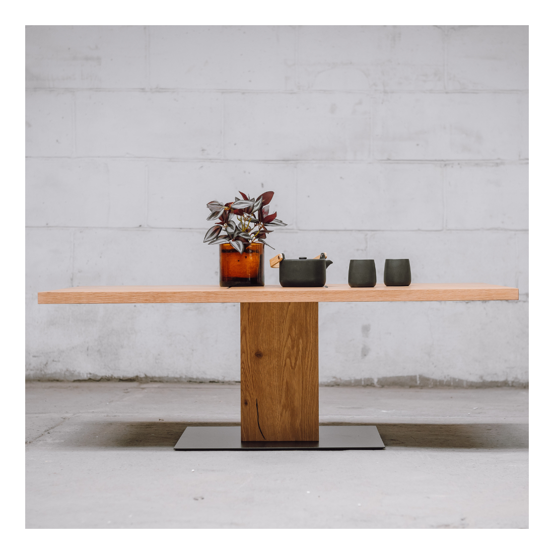 Placă de bază: Metal lacuit negru, blat și coloană: furnir de stejar sălbatic, uns