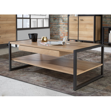 Nuanța de Stejar Riviera adaugă un aer de naturalețe și căldură în decorul tău, creând un contrast plăcut cu elementele metalice de culoare negreu. Acest echilibru între materiale și culori conferă mesei o eleganță subtilă și contemporană, perfectă pentru un living sau o zonă de relaxare modernă.