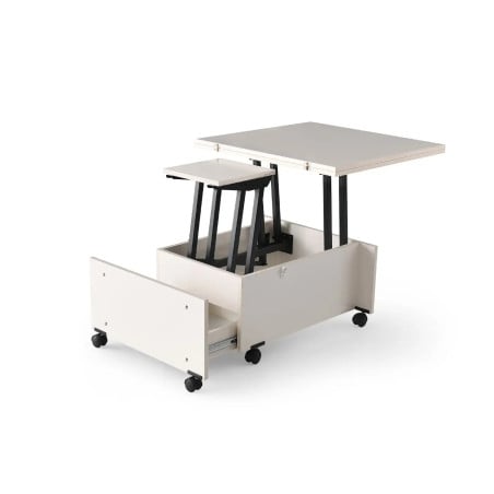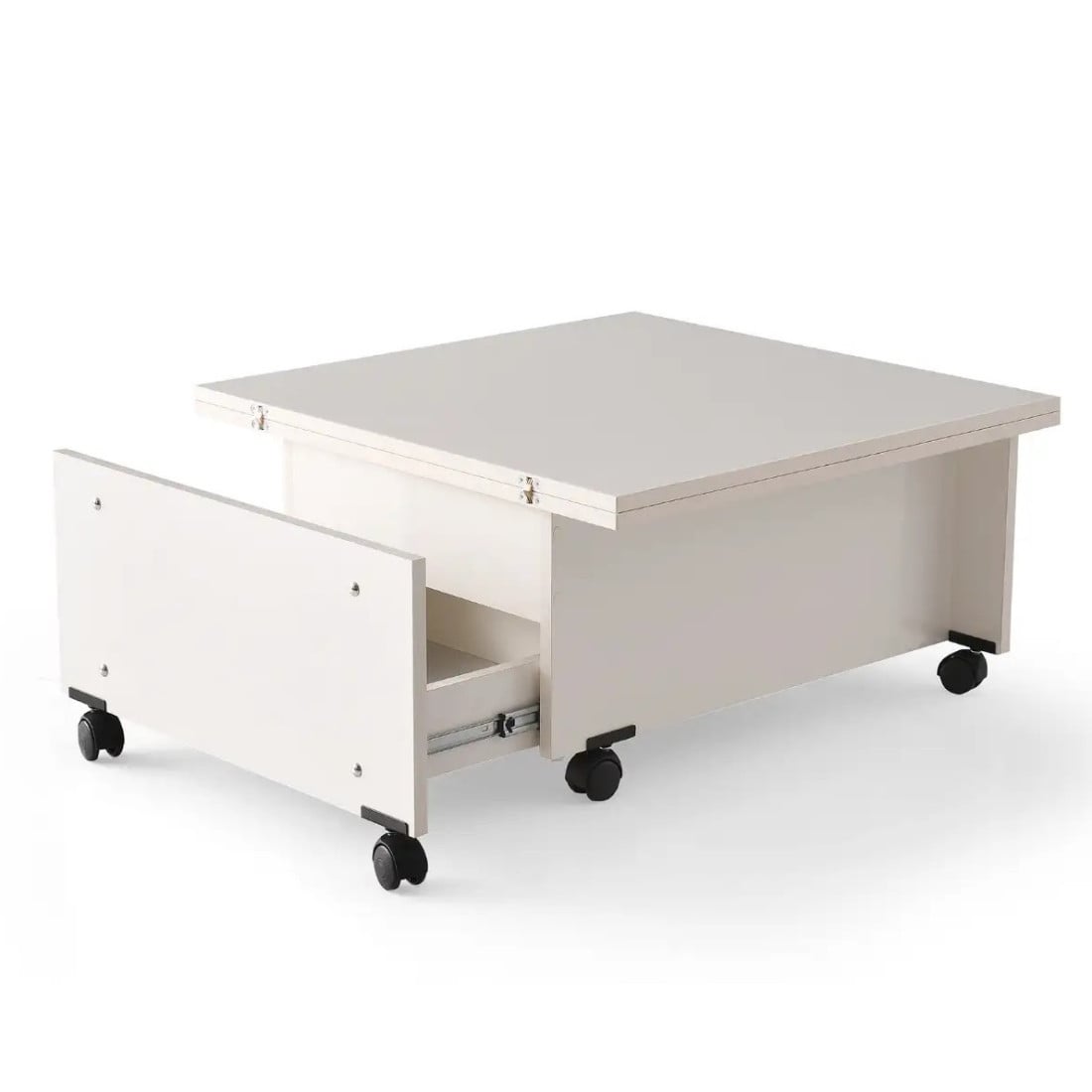 Masa Cafea Smart, Alba, Multifunctionala, Extensibila, Cu Roti, Cu Spatiu Depozitare, 75/150 Cm