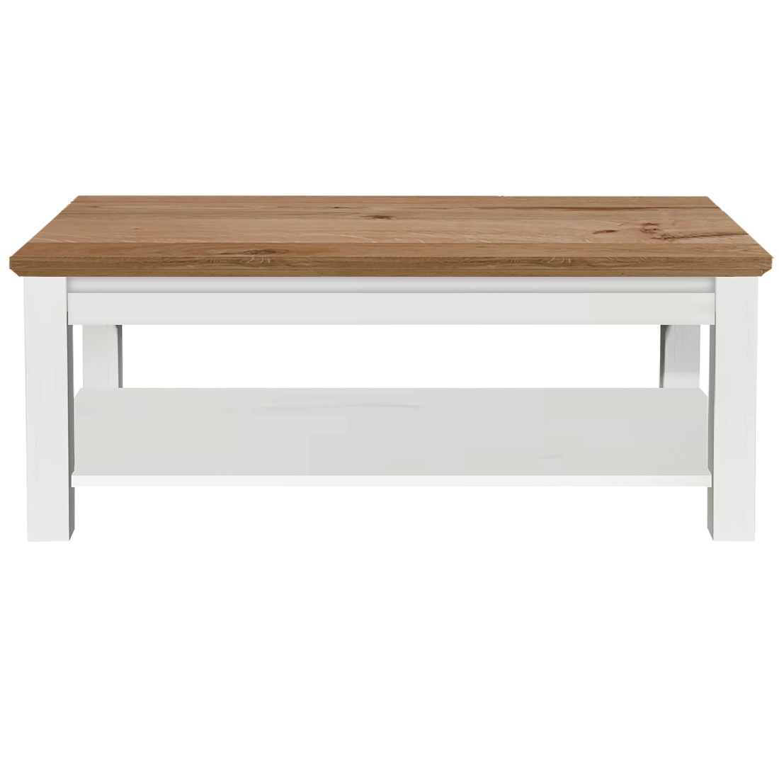 Masă de Cafea Thuxon 115 cm – Alb și Blat din Furnir de Stejar-01