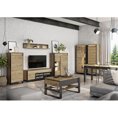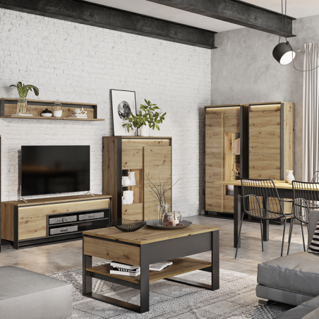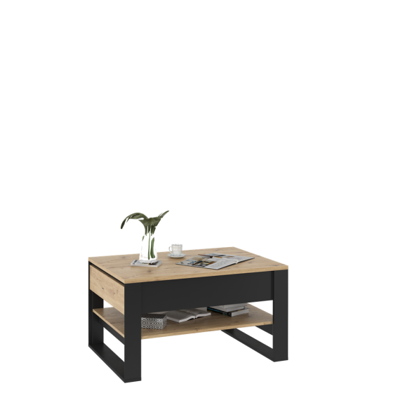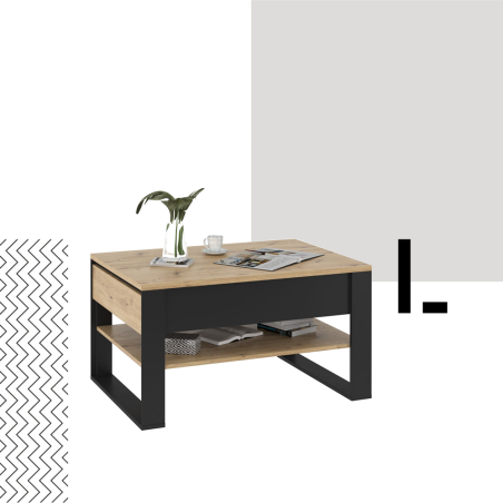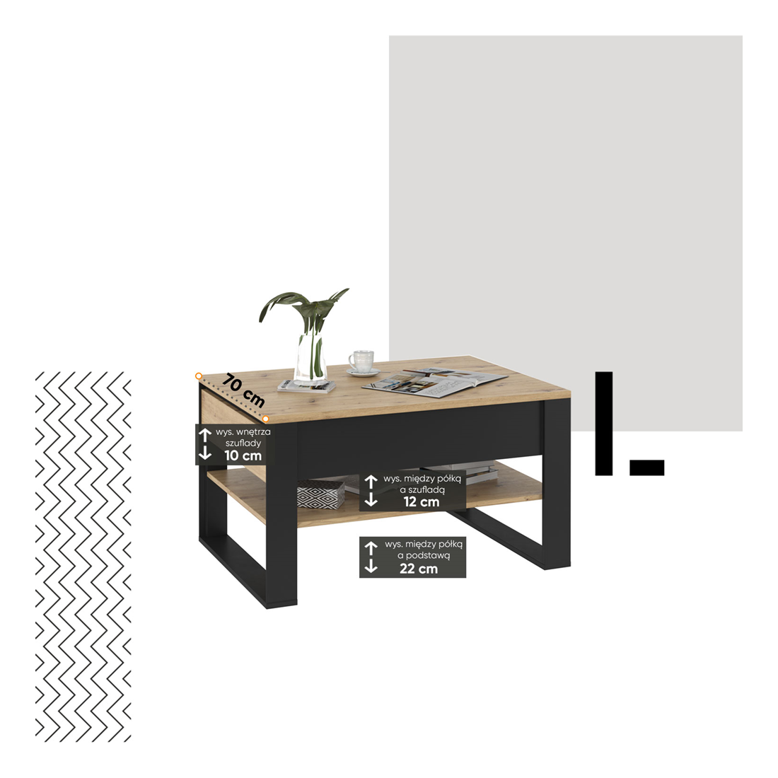 Masa De Cafea Vant Cu 2 Sertare, Stejar Artizan Si Negru, 100 Cm-01