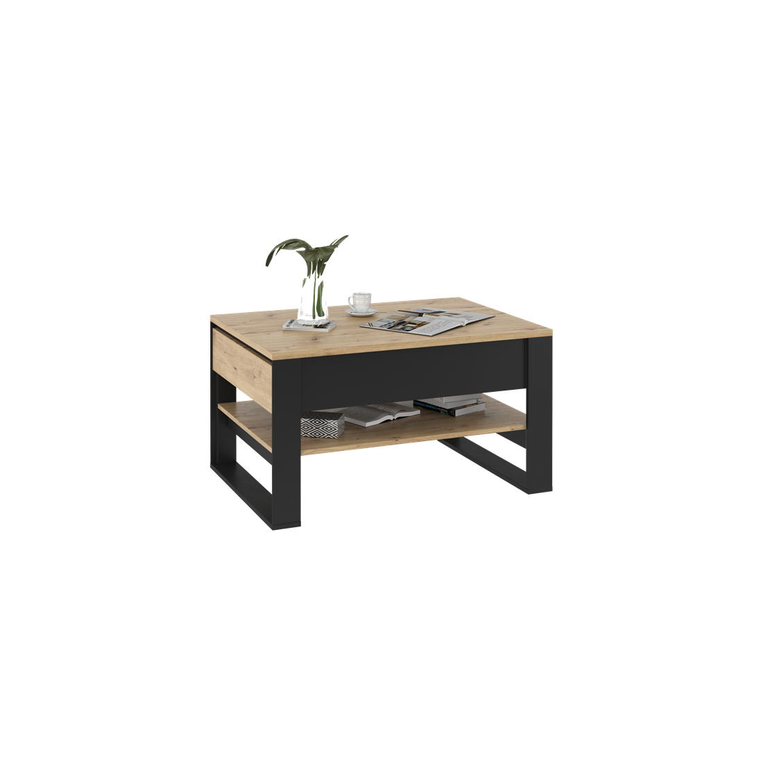 Masa De Cafea Vant Cu 2 Sertare, Stejar Artizan Si Negru, 100 Cm