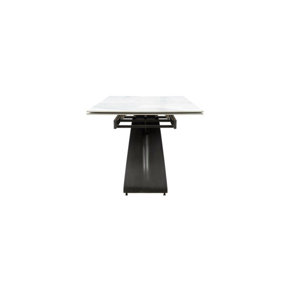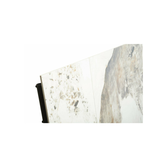 Masa Tiamat se remarcă prin contrastul sofisticat dintre blatul ceramic cu aspect natural și baza metalică robustă, oferind un echilibru vizual deosebit.