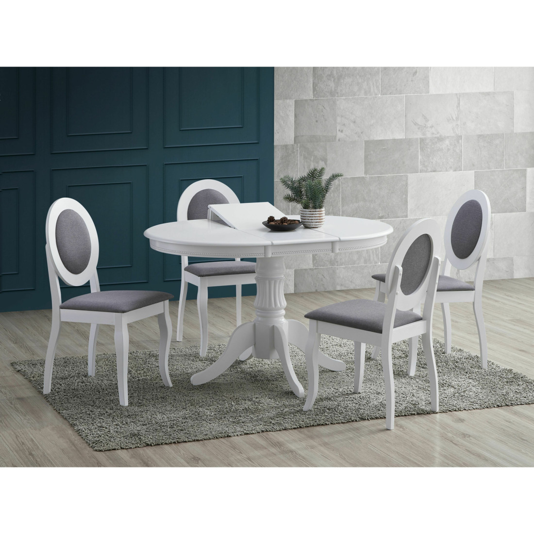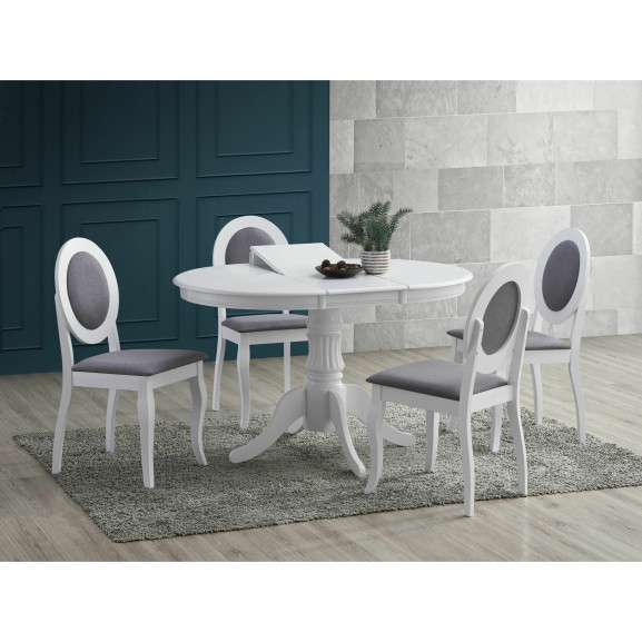 Masa Wonder impresionează prin linia clasică și culoarea albă, care conferă luminozitate și se integrează ușor în orice tip de decor. Piciorul central oferă stabilitate suplimentară și un aspect distinctiv, completând designul rafinat.
