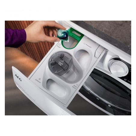 UniversalDose este un sertar unic, conceput pentru capsulele de detergent PODS®. Folosește jeturi de apă pentru a înmuia, perfora și dizolva complet capsulele, activându-le cu 60% mai rapid decât la utilizarea direct în tambur. Asigură putere suplimentară pentru îndepărtarea petelor în cazul ciclurilor de spălare de 1 oră cu apă rece.*