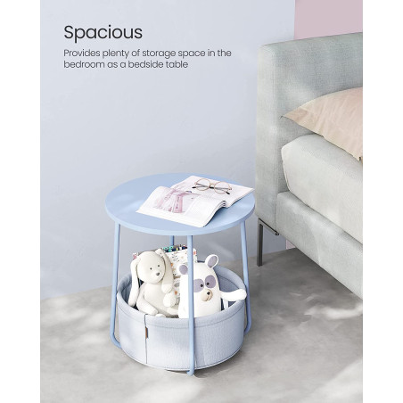 Această măsuță de cafea rotundă, simplă, cu un coș albastru pastel, va adăuga un plus de stil sufrageriei sau dormitorului dumneavoastra și este ușor de asortat cu o varietate de stiluri de mobilier.