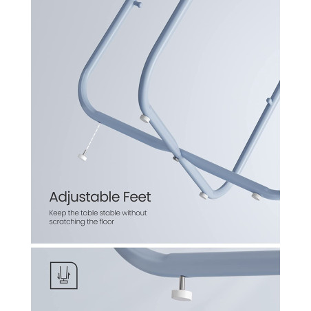 Blatul robust din pal este fixat pe cadru fără clătinare. Picioarele dintr-o bucată din oțel în formă de U oferă un suport solid. Picioarele reglabile măresc stabilitatea și nu zgârie podeaua.
