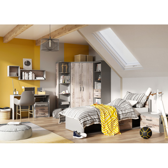 Noptiera Sorento Cu 2 Sertare, Graphite Si Santana Oak, 70 Cm-01