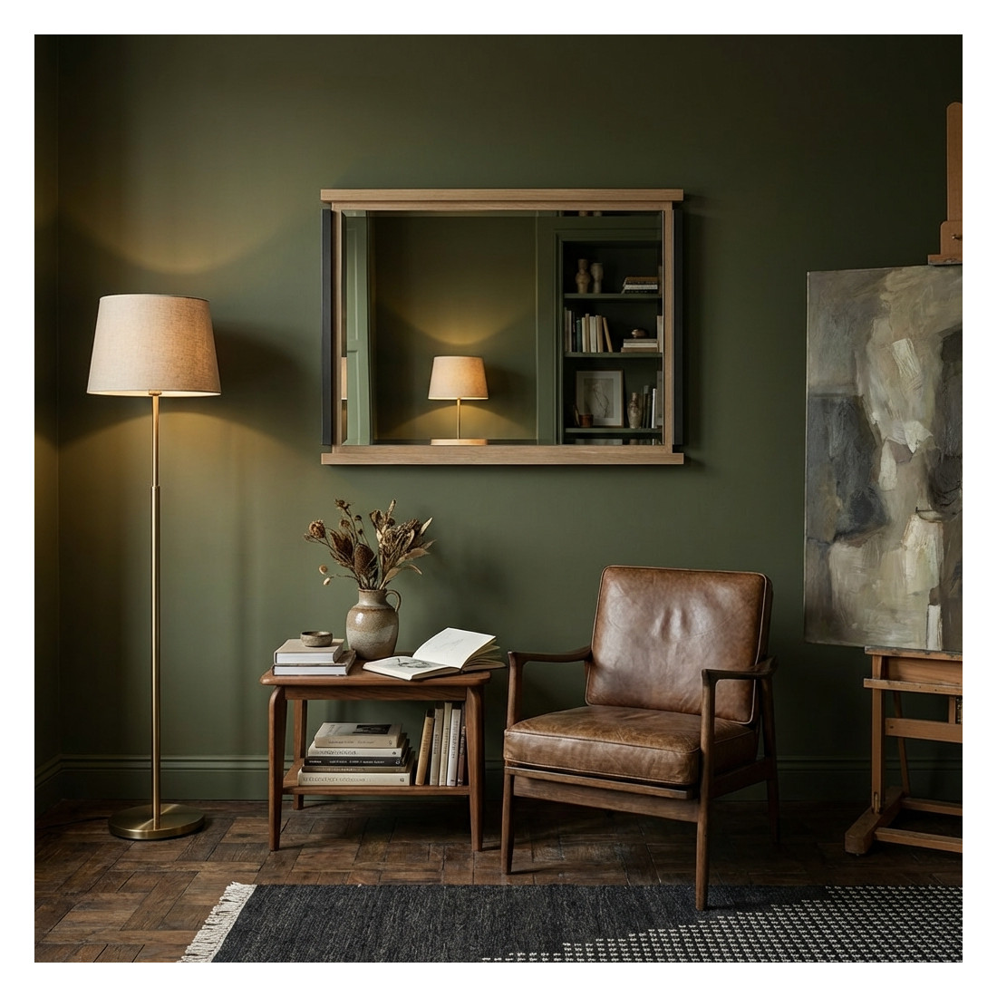 Furnirul din lemn masiv de foioase adaugă textură și profunzime oglinzii, evidențiind atenția la detalii și calitatea materialului.