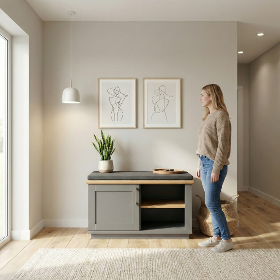 Renunță la compromisuri în organizarea holului cu acest Pantofar Alpina de dimensiuni generoase. Conceput să arate ca o comodă elegantă de living, acest pantofar maschează perfect funcționalitatea sa practică, transformând intrarea în casă într-un spațiu rafinat și ordonat.
