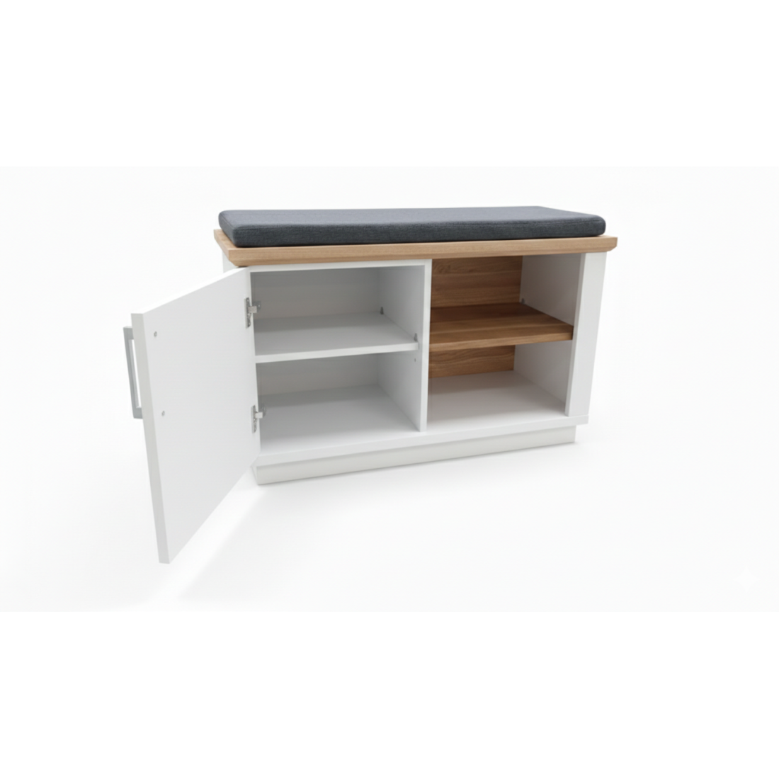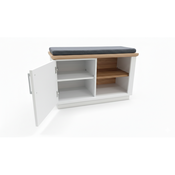 Zonele laterale: Cele două uși mari ascund rafturi spațioase, ideale pentru cutii de pantofi, cizme sau încălțăminte voluminoasă.