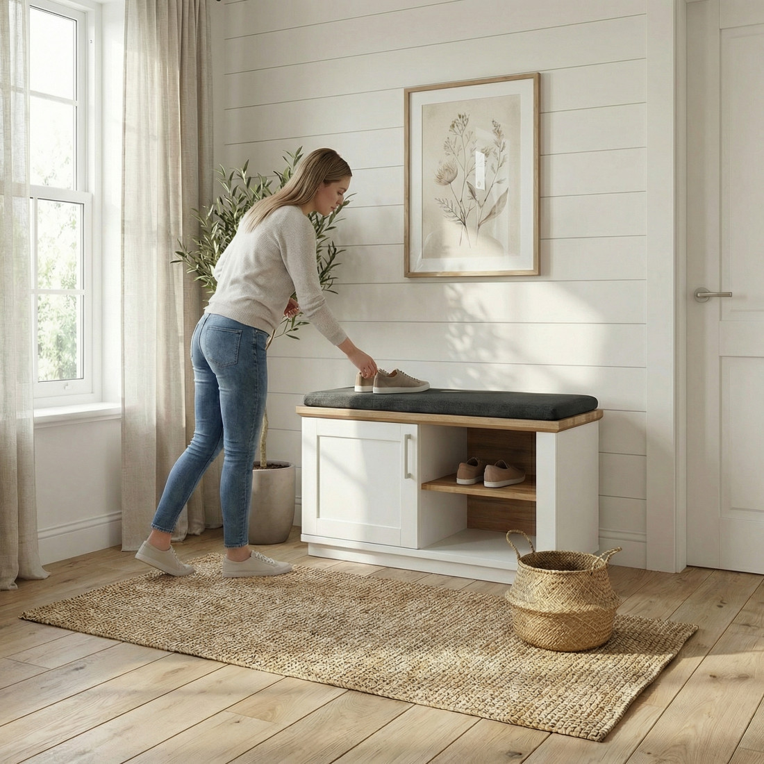 Renunță la compromisuri în organizarea holului cu acest Pantofar Alpina de dimensiuni generoase. Conceput să arate ca o comodă elegantă de living, acest pantofar maschează perfect funcționalitatea sa practică, transformând intrarea în casă într-un spațiu rafinat și ordonat.