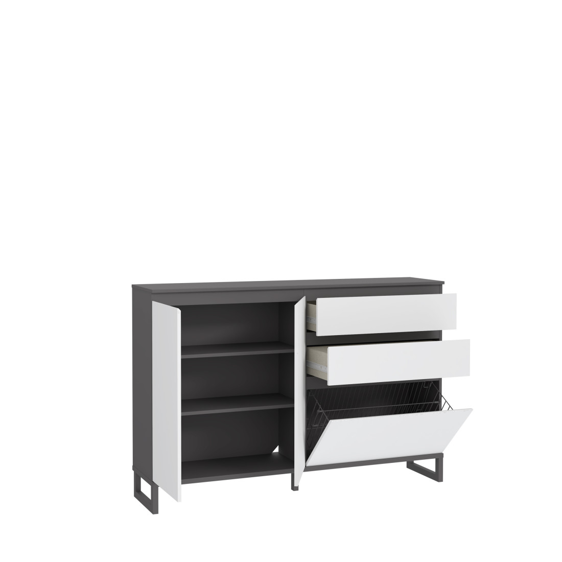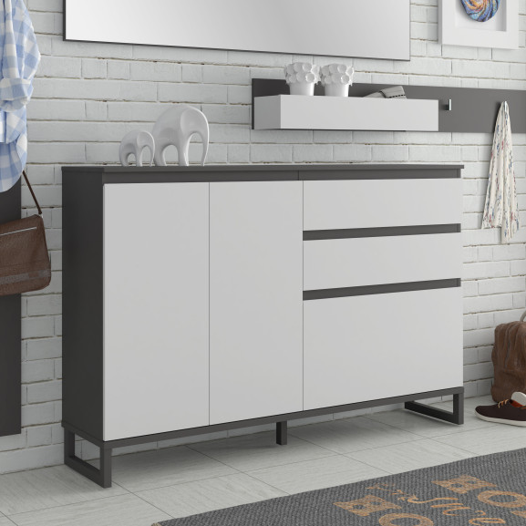 Cu designul său modern și culorile neutre, Pantofarul Quala se integrează perfect în diverse amenajări interioare, aducând un plus de rafinament în spațiul tău. Nuanțele Gri Wolfram Uni și Gri Deschis conferă o notă contemporană, iar detaliile atent finisate completează estetica mobilierului.